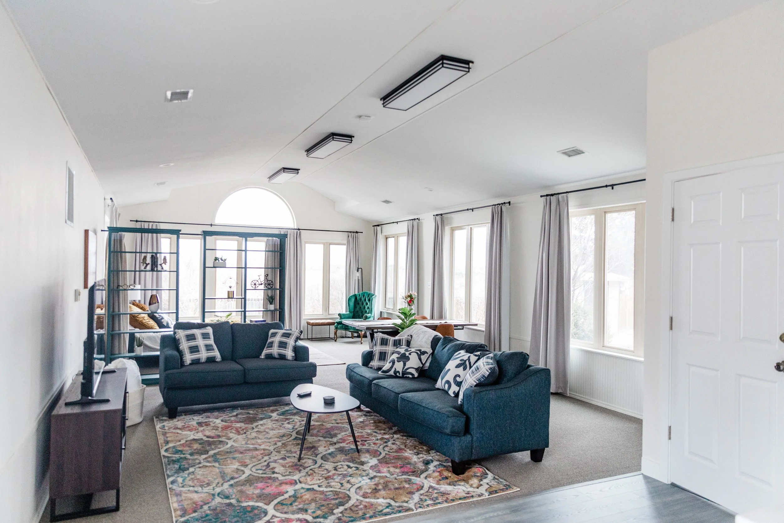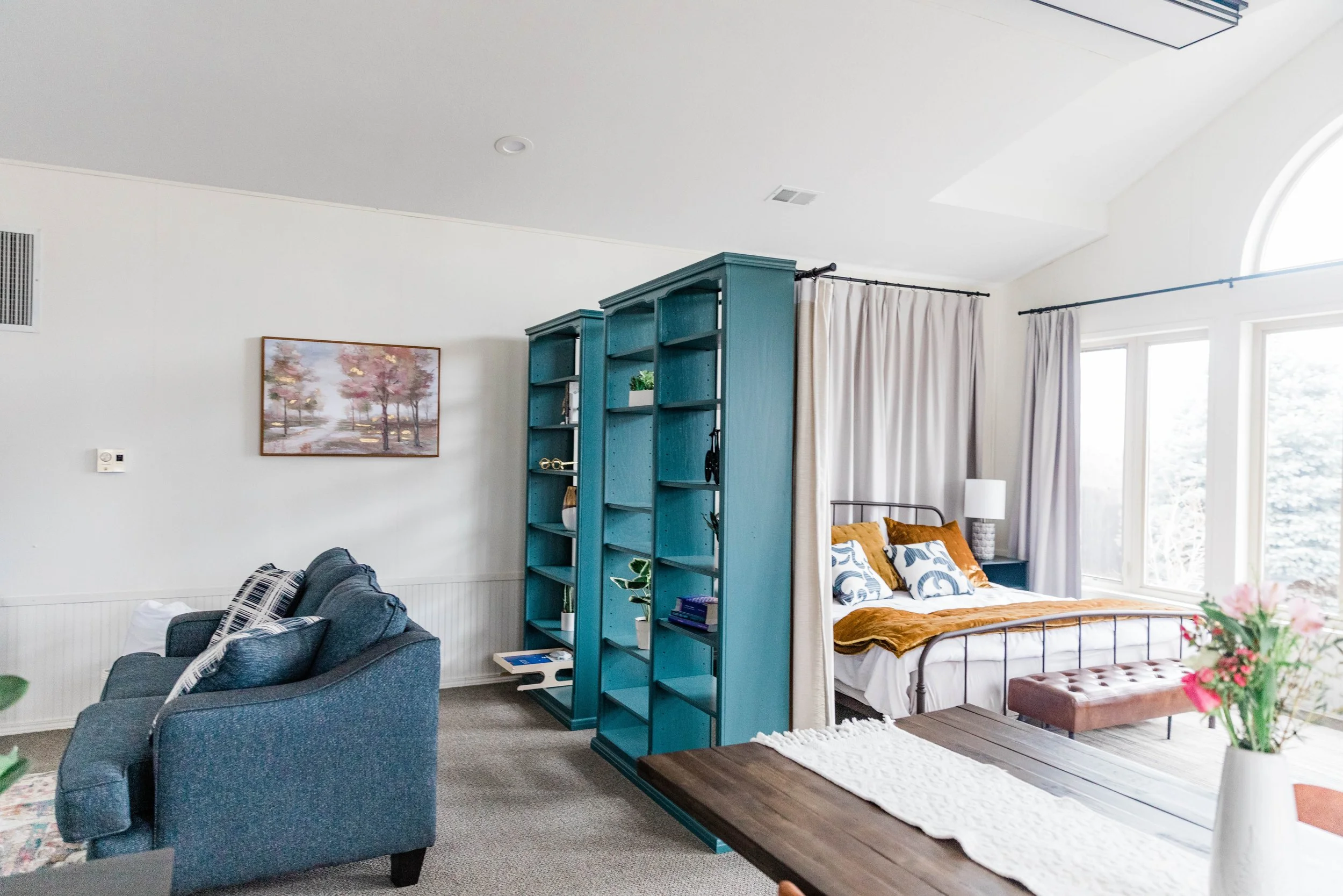 The furnace can be controlled with the Google Home thermostat near the kitchenette on the north wall. The air conditioning is controlled separately. There is a swamp cooler dedicated to the space that can be controlled from the thermostat near the TV on the south wall. Please do not run the furnace and the swamp cooler at the same time.